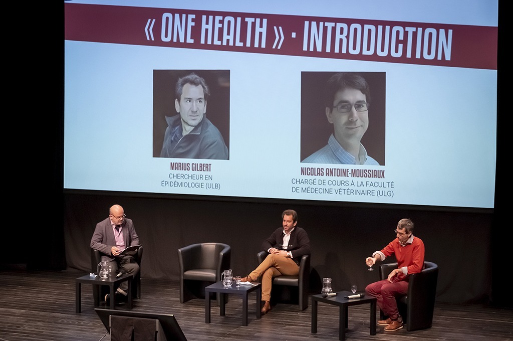 Le colloque s’est ouvert sur un accueil et la présentation des enjeux par la présidente du Centre d’Action Laïque Véronique De Keyser et Anne-Sophie Nyssen, vice-rectrice de l’Université de Liège. La première partie de la journée a ensuite été consacrée au concept One Health, ce qu’il recouvre, ses origines et ses impacts sur nos vies. Pour en parler : l’épidémiologiste Marius Gilbert (ULB) et le chargé de cours à la Faculté de Médecine vétérinaire (ULg) Nicolas Antoine-Moussiaux.