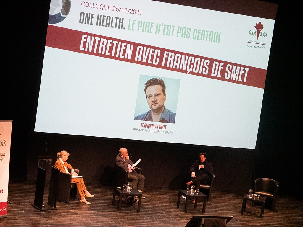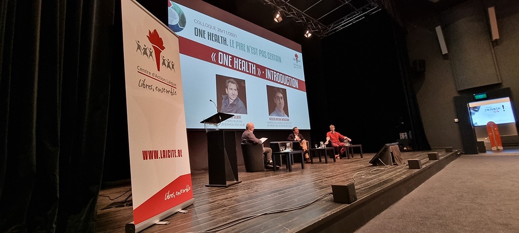 Vendredi 26 novembre, le Centre d’Action Laïque proposait un colloque intitulé « One Health. Le pire n’est pas certain ». Ce colloque concluait le cycle de réflexion entamé début 2021 consacré à ce concept de One Health dans le cadre de la campagne d’éducation permanente Santé de tous, santé pour tous. Ce concept fait le constat qu’il n’y a qu’une seule santé sur notre planète. En d’autres mots, les santés de la flore, de la faune et des humains sont totalement interdépendantes. Cela questionne inévitablement notre rapport à la nature, à l’environnement, aux animaux. Cela peut également susciter chez de nombreuses personnes une « éco-anxiété », à savoir cette peur d’une fin possible de l’humanité, suite aux pandémies à venir, qui sont hautement probables, et au dérèglement climatique.